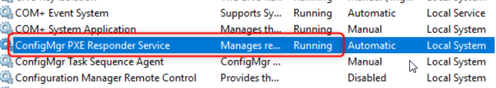 Ayrıca servislerde “ConfigMgr PXE Responder Service” isimli bir servis oluşuyor. Bu servisinde çalıştığını kontrol edebiliriz.
